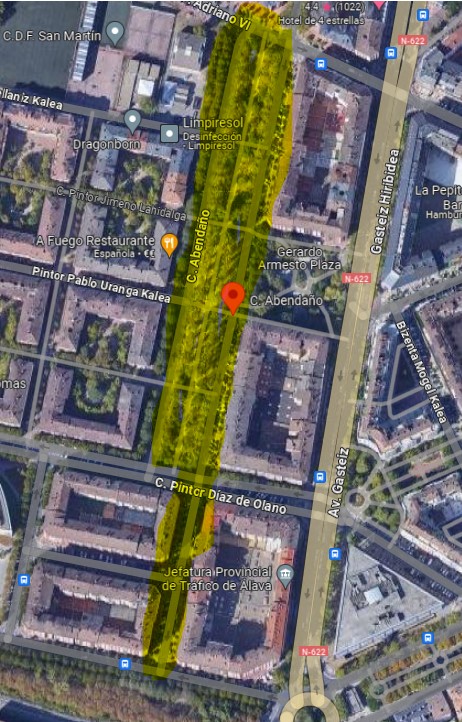 Va desde la calle Beato Tomas de Zumárraga a la calle Pintor Teodoro Dublang, paralela a la Avda. de Gasteiz.