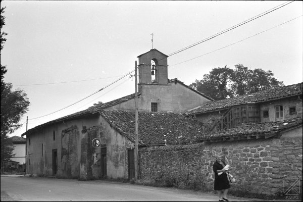Foto de la iglesia de San Martín de Abendaño en 1963 (de ARQUÉ, antes de la última restauración realizada en 1978 en la que se descubrieron en sus paredes unas valiosas pinturas murales de la época medieval que estaban cubiertas con cal).